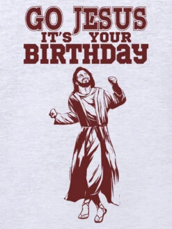 Get in the party mood and prepare to celebrate the birth of Christ with this awesome sweater! A great way to get a laugh over the Christmas holidays, this design is set on a grey heather sweater and features the slogan ‘Go Jesus It’s Your Birthday’.