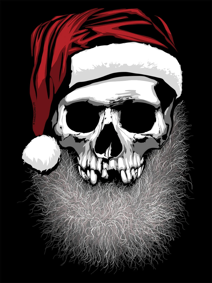 Christmas is the time for celebrating, so why not combine the holidays that you love the most! This black Santa Sack features a bearded skull donning a red festive hat.