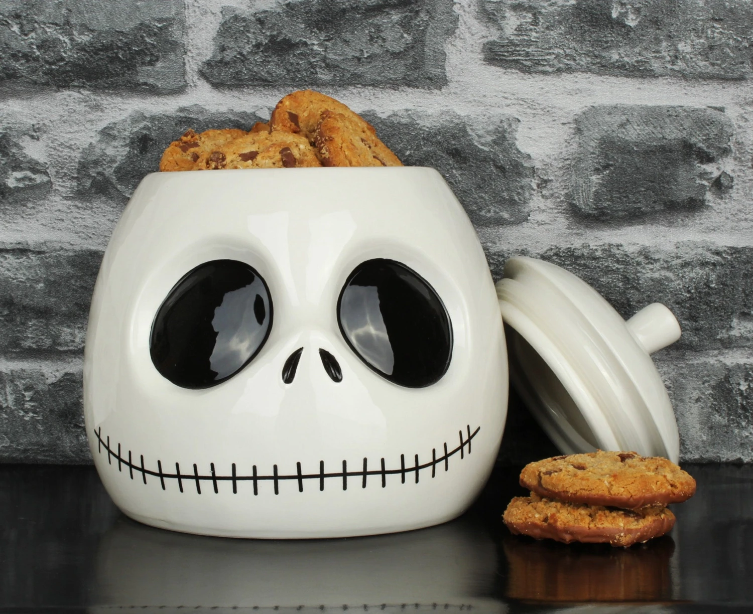 Step up dearest brave soul, and say hello to Jack the Pumpkin King…if you dare! Featuring The Nightmare Before Christmas’s one and only skeletal Santa, this goth-y cookie jar sees you reaching into Jack’s head to grab your delicious biscuit treats. The ideal compliment to any gothic kitchen! Official merch.